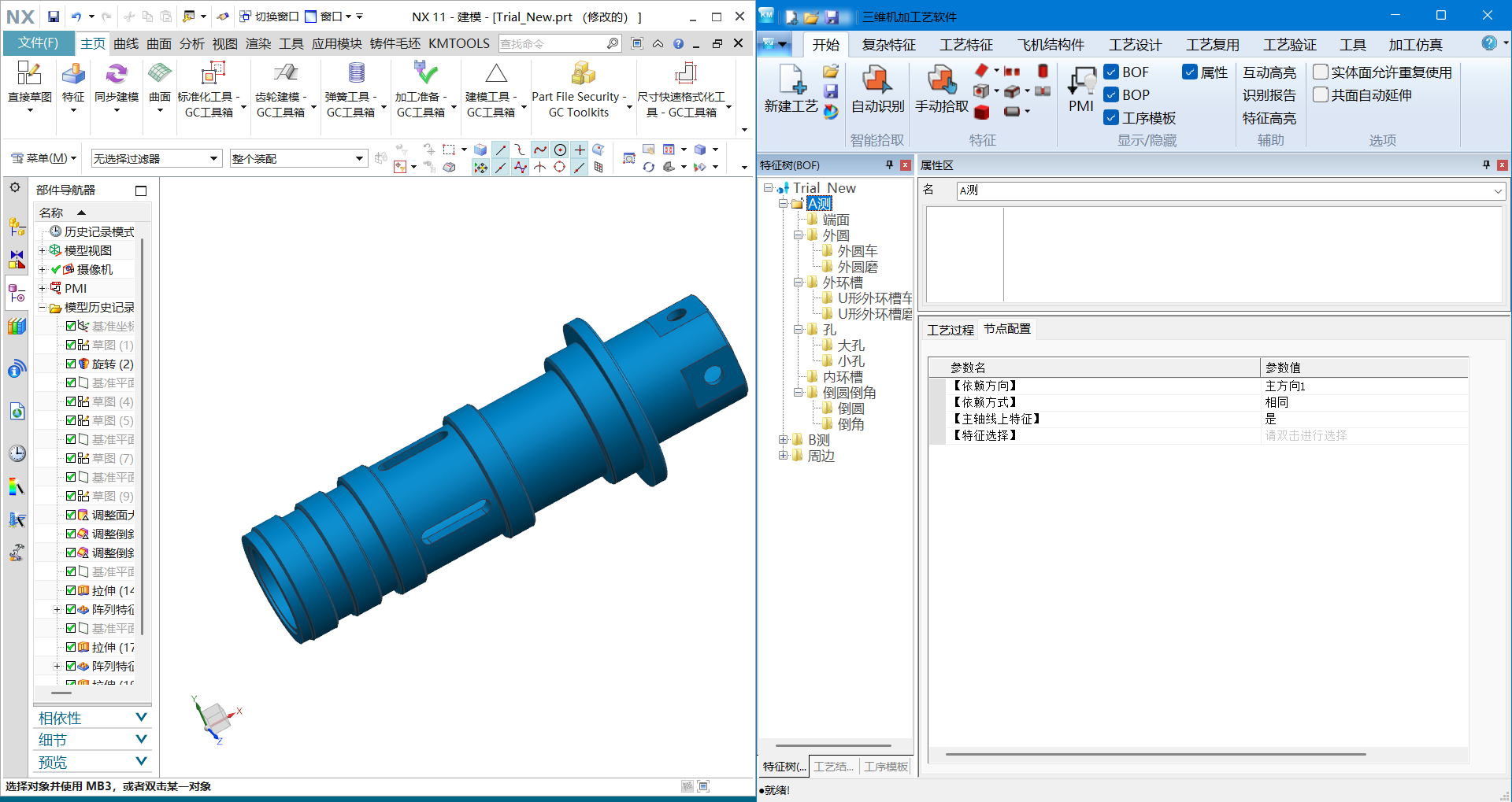 3DMPS 12.0軟件結合加工工藝對加工策略、加工刀具和加工位置集成優化,將機加工藝數據自動傳遞至CAM軟件,生成刀位文件和NC代碼,并將CAM軟件中完成的加工工藝(機床、刀具、加工參數、加工策略、NC代碼)回傳到3DMPS軟件,實現基于特征快速編程、數據雙向互通。