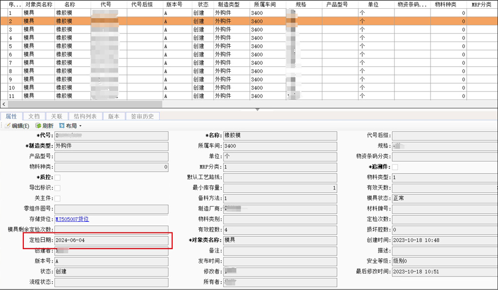開目項目團隊對企業橡膠工段生產業務需求進行深度調研,收集整理了基礎數據,對混雜的物料進行依次分類,梳理設備臺賬,清理車間模具,根據生產強度設置設備定檢提醒,建立模具借用與歸還的使用流程。