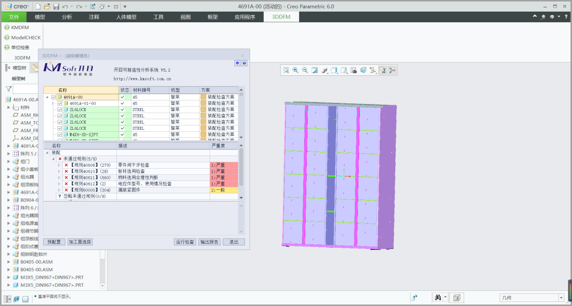 4、智能制造特征識別與審查,智萊科技主要的工藝制造領域包含鈑金、裝配、規范性、標注等,開目3DDFM快速全面準確的進行制造特征識別與審查,且不受零件建模順序和建模歷史的影響,能夠處理非參數化建模的模型數據源。