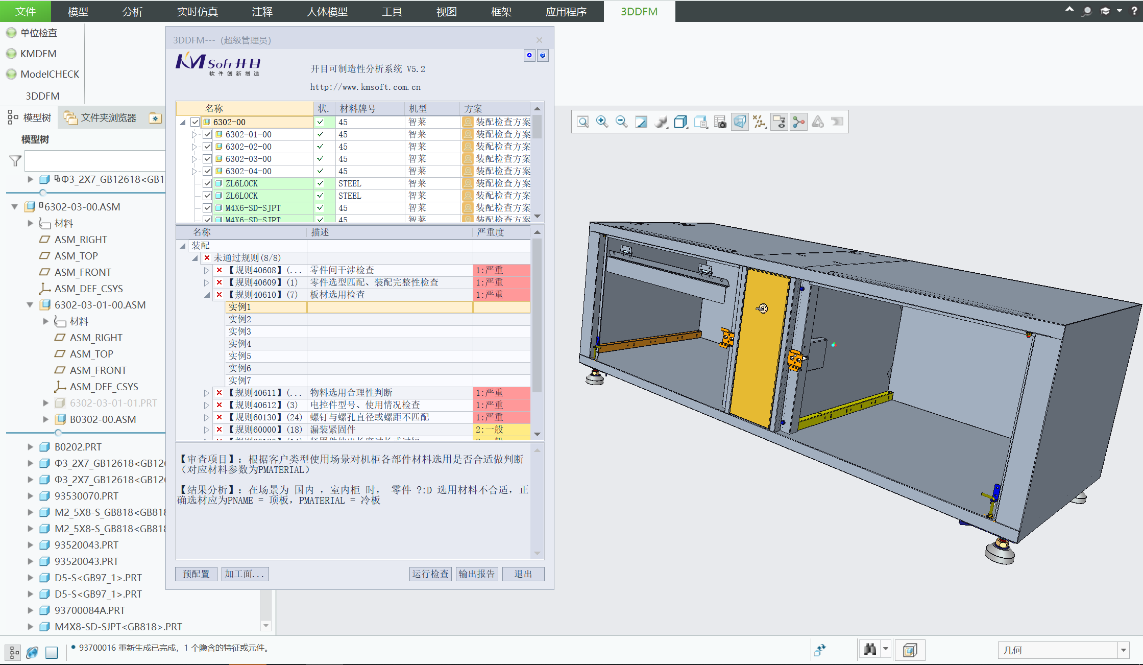 3、“一鍵式”人機操作,智萊科技工藝審查人員通過簡單的操作即能完成工藝性審查,不僅能夠支持單個零件的可制造性核查,而且支持對裝配模型指定批量核查,同時,支持結果一鍵式輸出。